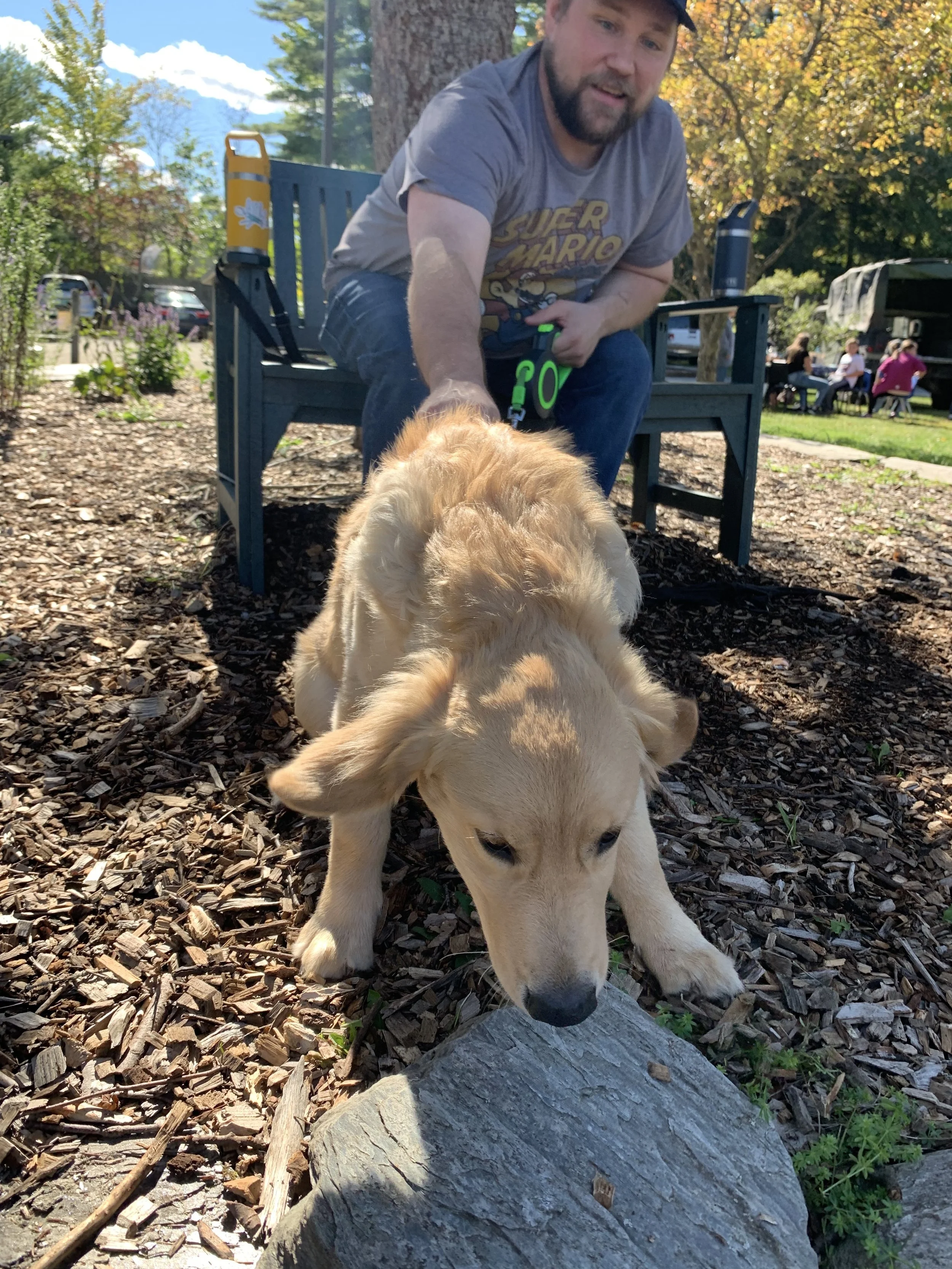 Buckeye, an 8-month-old golden retriever puppy, belonging to Aaron Welch of Bradford can barely contain his excitement.