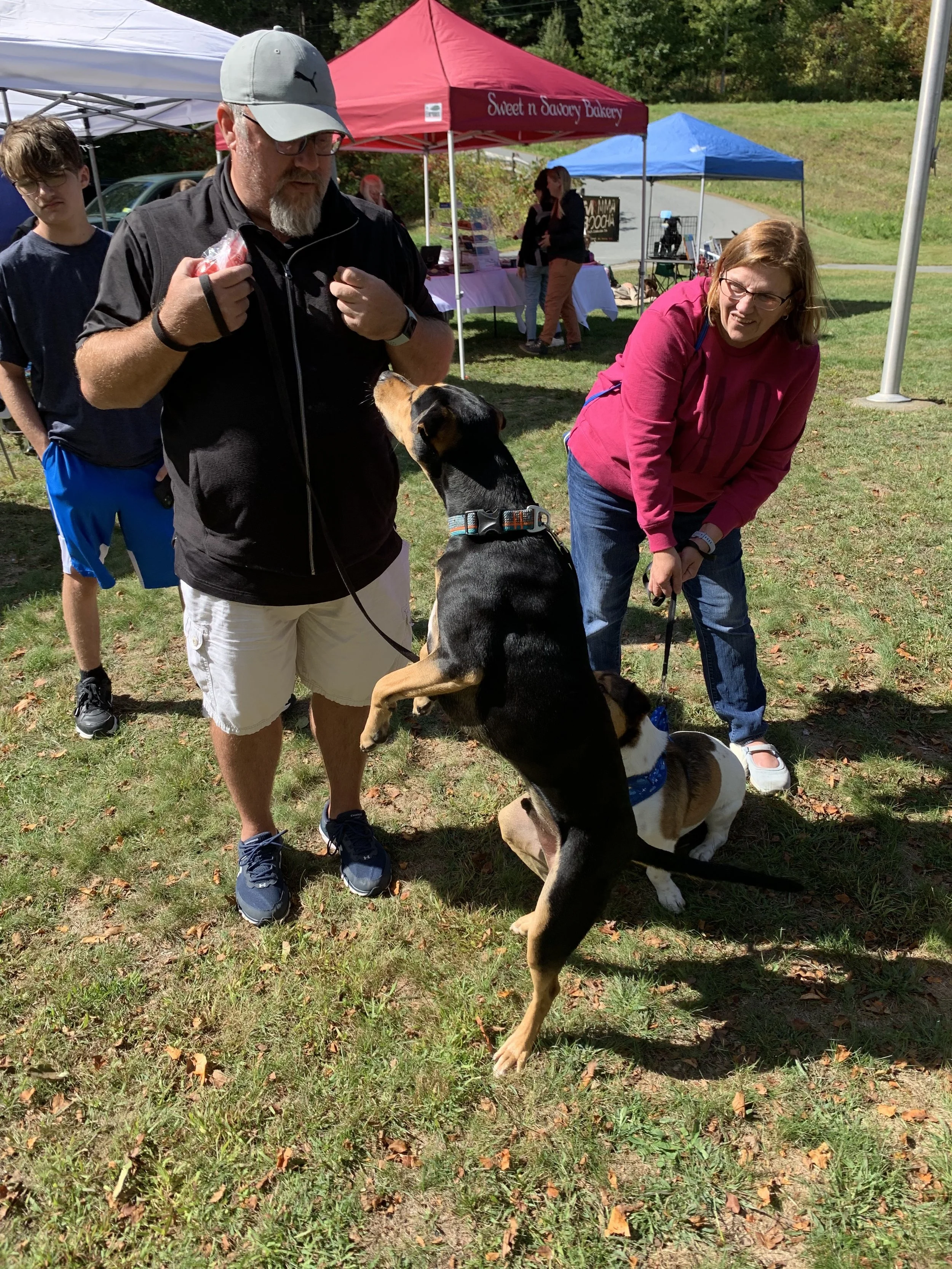 Bradford resident Angela Colbeth and her Weimaraner mix Pearl enjoyed the festivities at Elizabeth’s Park on Sept. 24.